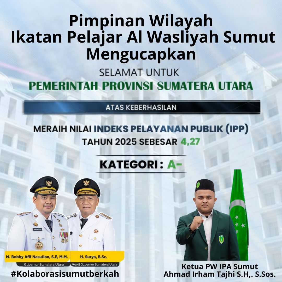 Haba.co.id | Medan — Pimpinan Wilayah Ikatan Pelajar Al Washliyah (PW IPA) Sumatera Utara yang diketuai Ahmad Irham Tajhi, S.H., S.Sos menyampaikan apresiasi dan ucapan selamat kepada Pemerintah Provinsi Sumatera Utara.