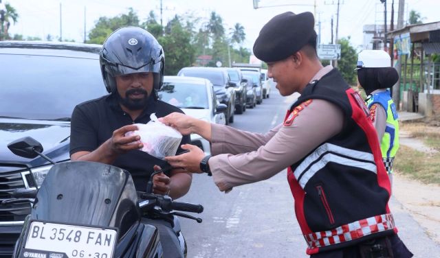 ACEH TIMUR – Kepolisian Resor (Polres) Aceh Timur, Polda Aceh membagikan ratusan paket takjil kepada pengguna jalan yang melintas di depan Mapolres Aceh Timur, Rabu (11/03/2026) sore. Selain sebagai bentuk kepedulian kepada masyarakat di bulan Ramadhan 1447 Hijriah, kegiatan ini sekaligus menjadi bagian dari peringatan Hari Ulang Tahun (HUT) ke-74 Korps Samapta Tahun 2026.