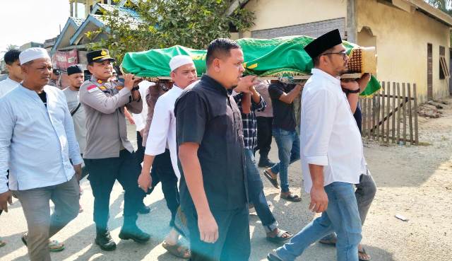 Tidak hanya menyampaikan belasungkawa kepada keluarga yang ditinggalkan, Kapolsek bersama anggota juga turut mengantarkan jenazah almarhumah ke tempat peristirahatan terakhir. Kehadiran aparat kepolisian ini menjadi bentuk dukungan moril bagi keluarga yang sedang berduka.