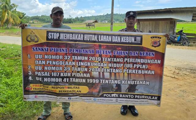 ACEH TIMUR – Polsek Ranto Peureulak, Polres Aceh Timur, Polda Aceh terus menggencarkan edukasi kepada masyarakat terkait pencegahan kebakaran hutan dan lahan (karhutla).