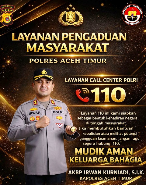 ACEH TIMUR – Polres Aceh Timur, Polda Aceh mengajak masyarakat untuk memanfaatkan layanan hotline Polri 110 sebagai saluran cepat pelaporan dan permintaan bantuan kepolisian, khususnya selama Ramadhan 1447 Hijriah hingga momentum Lebaran 2026.
